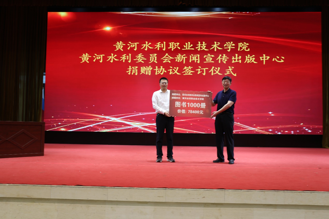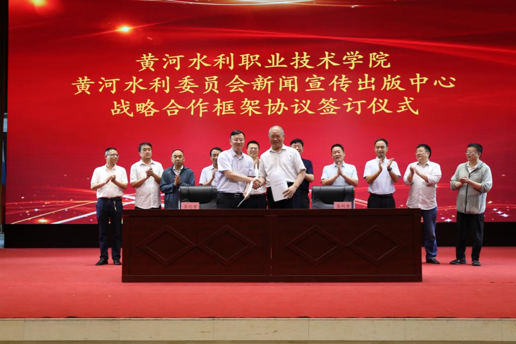 6月13日上午,我校与黄河水利委员会新闻宣传出版中心(以下简称“黄委新闻出版中心”)在大学生学生活动中心一楼报告大厅举行战略合作框架协议签订仪式。我校党委副书记、校长胡昊,党委副书记、工会主席杨士恒,黄委新闻出版中心党委书记、主任张松,党委委员、黄河水利出版社社长胡志杨,党委委员、副主任马广州等出席签约仪式。我校党委宣传部、图书馆、学报编辑部、科技处及水利工程学院等相关部门负责人、河南省跨流域区域引调水运行与生态安全工程研究中心成员、师生代表及黄委新闻出版中心相关人员参加。仪式由党委宣传部部长彭新立主持。