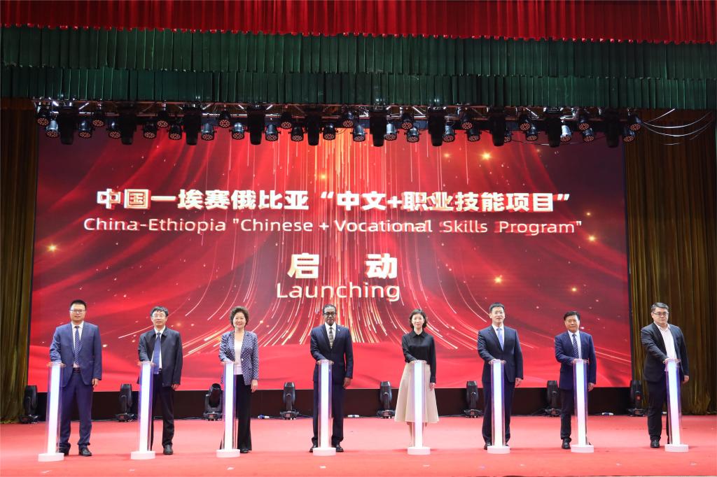 6月8日上午,中国—埃塞俄比亚“中文+职业技能项目”启动仪式在我校举行。埃塞俄比亚驻华大使塔费拉·德贝·伊马姆,河南省教育厅对外合作与交流处处长王华星,河南省人民政府外事办公室亚洲非洲工作处副处长郭骅,我校党委书记周保平,党委副书记、校长胡昊,河南职业技术学院党委副书记、校长梅乐堂,河南农业职业学院党委副书记、校长刘源,河南联非商务信息咨询有限公司董事长吴勇,省内高职院校代表及企业代表共100余人出席本次活动。