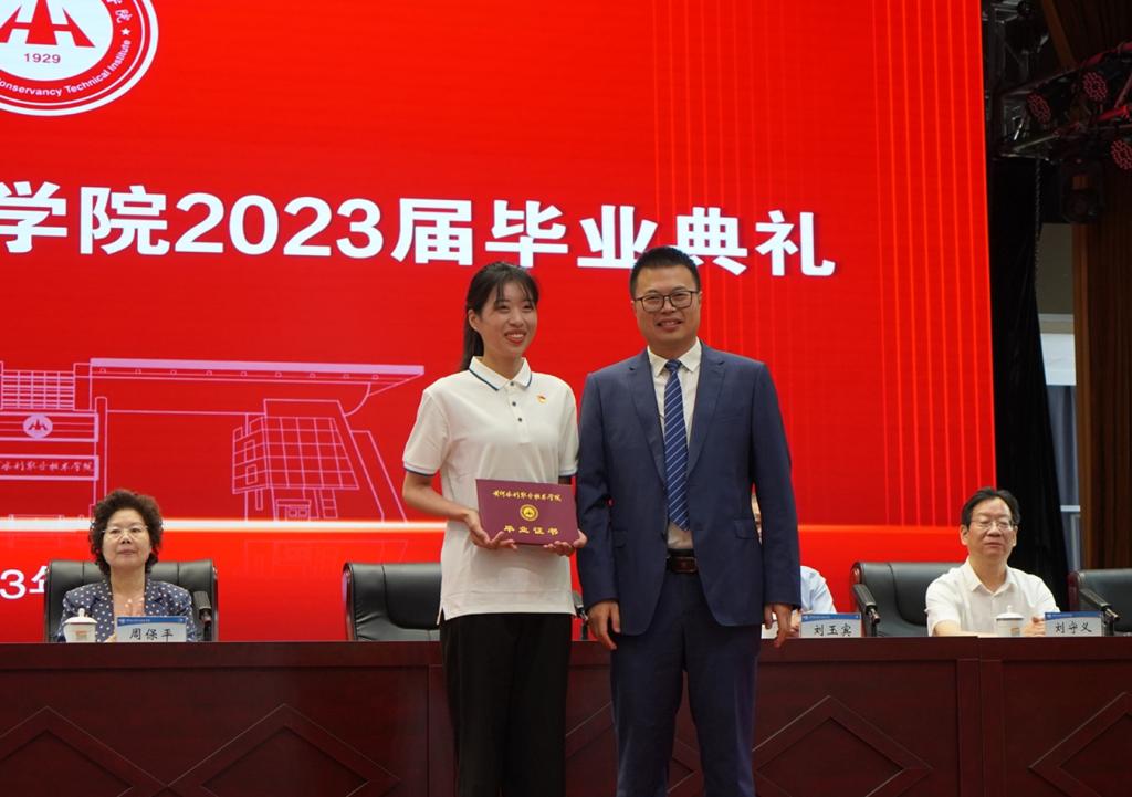 校党委副书记、校长胡昊为毕业生代表颁发毕业证书。副校长周志琦宣读2023届优秀毕业生表彰文件。校领导为优秀毕业生代表颁发荣誉证书。毕业生代表向教师、辅导员代表,生活服务和后勤保卫工作人员代表献花表示感恩之情。