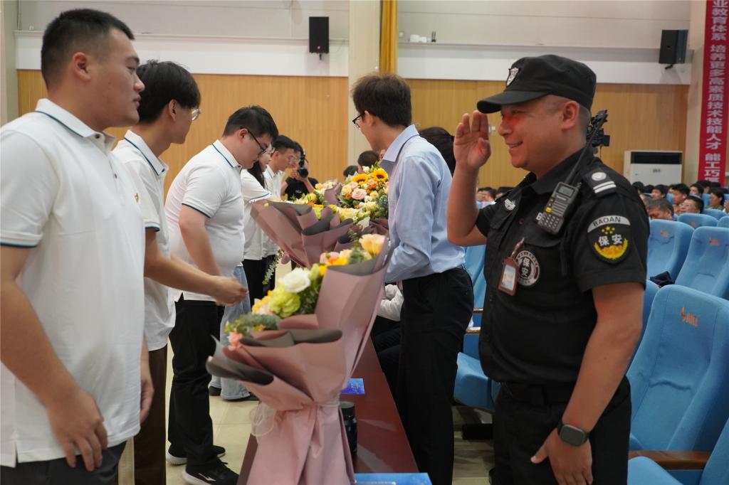 毕业生代表向教师、生活服务和后勤保卫工作人员代表献花