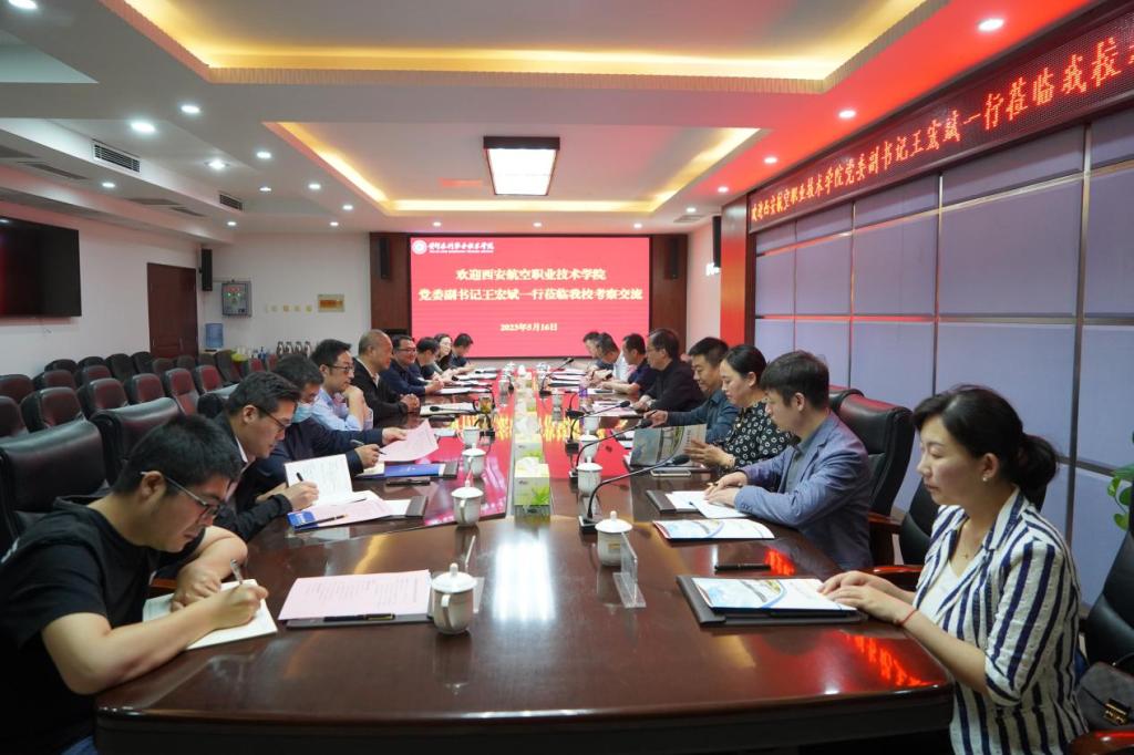 王宏斌对我校的热情接待表示感谢,并简要介绍了西安航空职业技术学院的发展情况和办学特色。他表示,希望通过此次交流能够学得先进经验,进一步加深两校之间的友谊,促进两校共同发展。