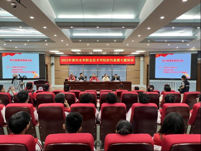 为贯彻落实习近平总书记对防汛救灾工作的重要指示精神,提高全校广大青年学生的防汛意识和救援技能,保障突发事故时,能够高效、有序地进行抢险与救援处理,在全国第15个防灾减灾日宣传活动来临之际,5月9日下午,我校在3号实训馆报告厅组织开展2023年度防汛救援专题培训活动。共青团开封市委社联部部长闫琰、金耀街道综治办主任张拯、郑州市红十字水上义务救援队队长牛振西、开封市蓝鲸水上救援队队长岳星、河南省日报社及我校各学院学生代表220余人参与本次活动。活动由校团委书记范龙主持。