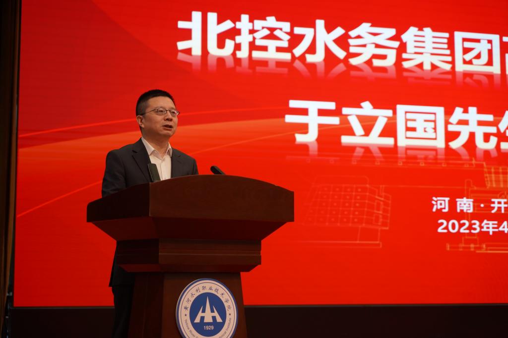 于立国在致辞中介绍了北控水务集团概况,以及在产教融合领域十年探索实践取得的丰硕成果,并表达了对本次合作的高度重视。他表示,期望以共建产业学院为契机,开拓校企合作领域,深化校企合作内涵,将教育深度融入产业发展中,协同发挥资源优势,全面助力生态环境职业教育进步发展。北务水控将本着“资源共享、优势互补、合作共赢、协同发展”的理念,通过多方位、深层次、综合性的合作模式,紧跟国家重大战略发展方向,服务河南省“十大战略”及黄河流域生态保护和高质量发展,立足中原,辐射全国,为建设“绿水青山、美丽中国”做出更大贡献。