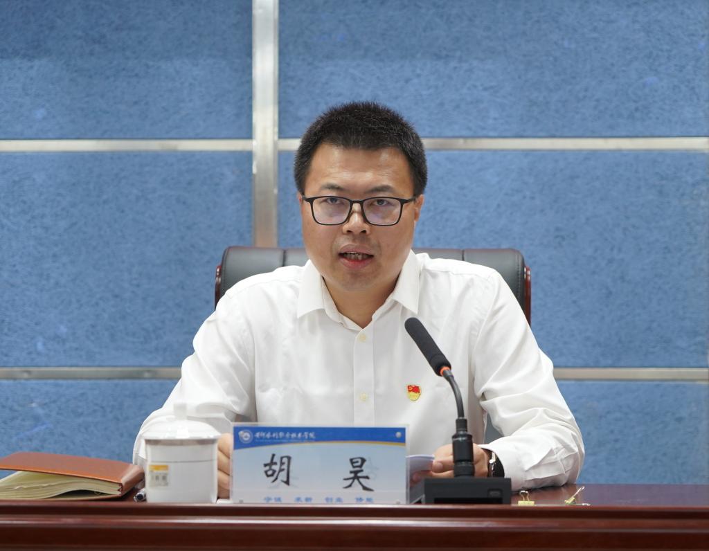 校党委副书记、校长胡昊宣读我校《完美网页版深入开展学习贯彻习近平新时代中国特色社会主义思想主题教育实施方案》