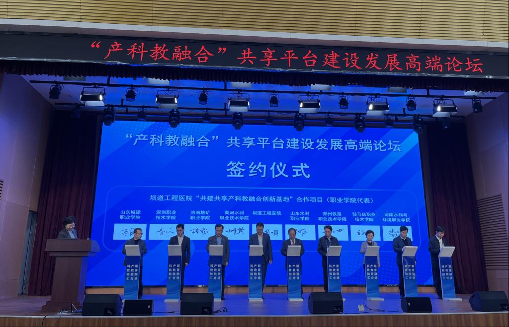 4月9日-10日,坝道工程医院“产科教融合”共享平台建设发展高端论坛在坝道工程医院综合试验基地(平舆)召开。论坛由中华国际科学交流基金会、中国职业技术教育学会、黄河实验室等主办,平舆县人民政府、中山大学河南研究院等承办,中国电建华东勘测设计研究院有限公司、黄河水利职业技术学院等协办。钱七虎、王复明、钮新强、唐洪武等56名国内外院士,河南省副省长宋争辉、驻马店市委书记鲍常勇、黄河水利委员会副主任苏茂林、教育部职成司副司长李英利等52名政府部门代表,中国职业技术教育学会会长、教育部原副部长鲁昕,中国公路学会理事长、交通运输部原副部长翁孟勇,中山大学、浙江机电职业技术学院等110余所高校代表、职业院校代表以及企业代表、科研院所代表、坝道工程医院总院和分院代表共计1000余人参会。我校党委副书记、校长胡昊带队参加论坛并应邀作典型发言,水利工程学院相关人员随同参加。