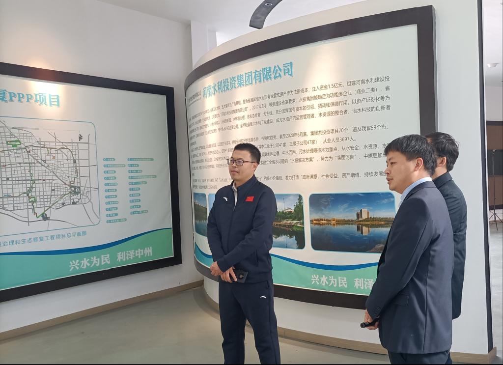 胡昊一行首先在坝道工程医院负责人陪同下考察和调研了坝道工程医院综合试验基地中试场地建设和河南水投舆源水生态实业有限公司,深入了解了坝道工程医院综合足尺试验场的类型、功能、服务面向及建设进展,以及水环境治理和生态修复工程建设情况。
