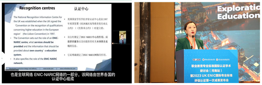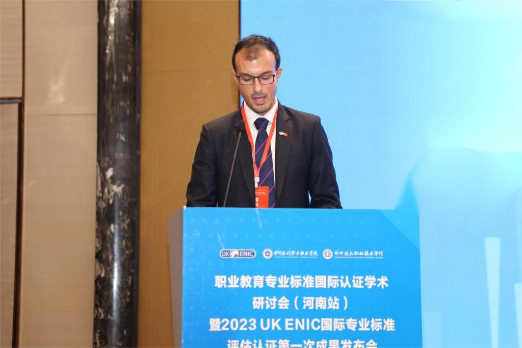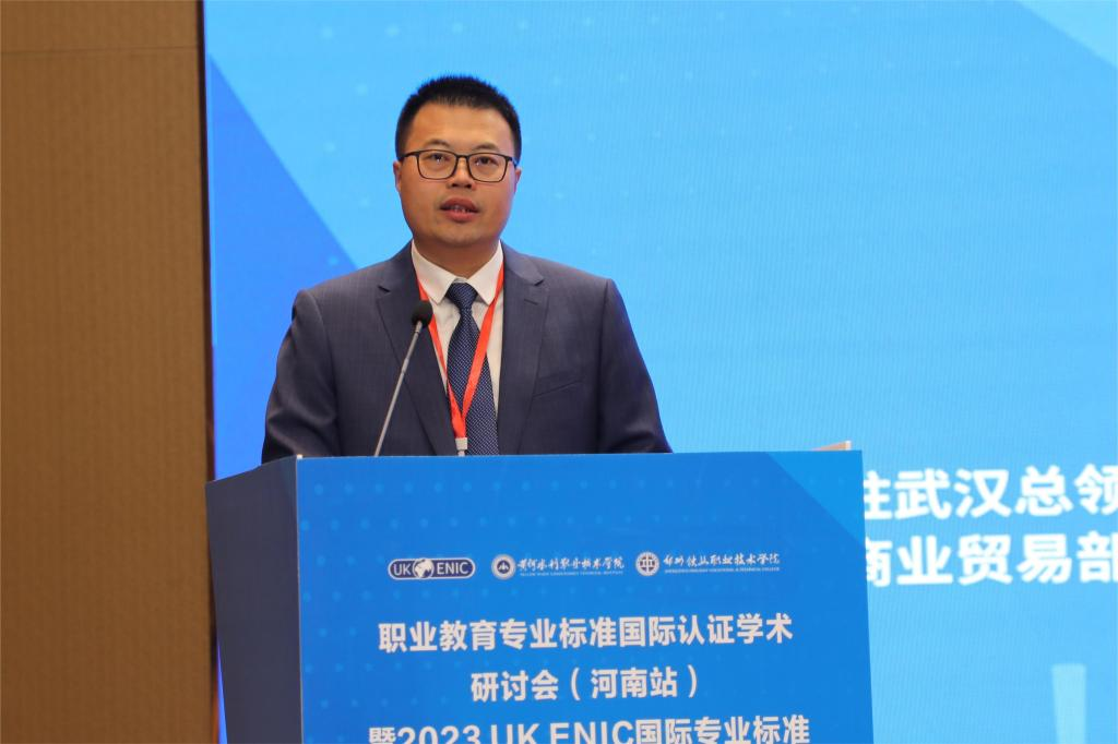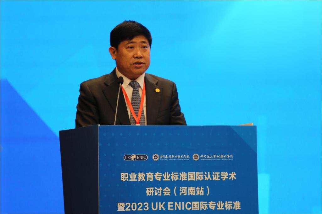 3月30日,由英国国家学历学位评估认证中心、黄河水利职业技术学院和郑州铁路职业技术学院联合主办的职业教育专业标准国际认证学术研讨会暨2023 UK ENIC国际专业标准评估认证第一次成果发布会在开封成功举行。英国驻武汉总领事馆商务领事诺安文,英国商业贸易部高级贸易投资官刘飞,河南省教育厅二级巡视员徐恒振,英国国家学历学位评估认证中心执行董事保罗·诺里斯、全球伙伴关系主任史蒂夫·米勒、中国首席代表李华杰,UK NARIC中方理事会秘书长焦满生,职业教育国际合作联席会议秘书长祝小伟,我校党委书记周保平,党委副书记、校长胡昊,副校长菅浩然出席会议。省内外高职院校领导、专家学者以及教师代表100余人参加会议。会议由胡昊主持。