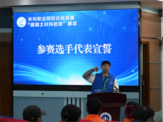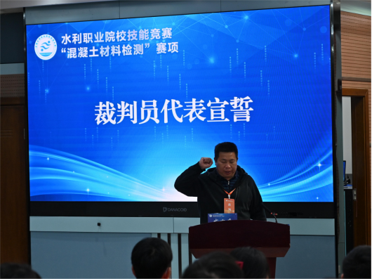 胡昊致辞,对参加此次比赛的各位领导、专家、老师和同学们表示热烈欢迎。他简要介绍了完美网页版的办学历史、办学条件、办学特色和育人成效,并指出,本次大赛对深化水利职业教育1+X证书制度试点工作及相关专业教学改革,进一步推动职业院校产教融合、校企合作,促进兄弟院校之间的互相交流学习有着重要的意义。他强调,严格按照中国水利教育协会要求,努力为各参赛队师生做好全方位服务,公开、公平、公正地做好赛事组织工作,努力将水利职业院校技能竞赛办成一流赛事,将“混凝土材料检测”赛项办成优质赛项。