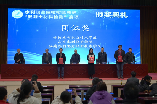 我校对本次承办工作高度重视,校领导多次主持召开赛前工作协调会,安排部署承办工作。参赛选手切磋了技艺,赛出了风格、赛出了水平,充分展现了当代水利技能人才的精湛技艺和良好精神风貌。最终,黄河水利职业技术学院、山东水利职业学院、福建水利电力职业技术学院荣获团体一、二、三名,34名选手分获个人一、二、三等奖,57名选手获得“土木工程混凝土材料检测”职业技能等级证书。
