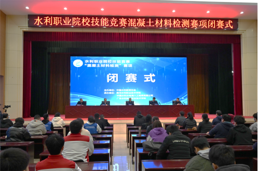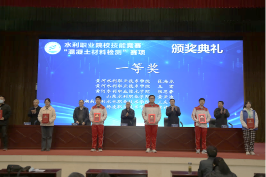 3月22日至3月25日,水利职业院校技能竞赛“混凝土材料检测”赛项(试点赛)在我校成功举办。本次比赛由中国水利教育协会主办,黄河水利职业技术学院、中国水利水电第八工程局有限公司、广东水利电力职业技术学院承办。中国水利教育协会副会长兼秘书长王韶华,我校党委副书记、校长胡昊,副校长刘玉宾,中国水利水电第八工程局有限公司教培中心副校长蔡大为、广东水利电力职业技术学院副校长蒋伯杰等参加相关活动。赛项专家组、裁判组、监督组、仲裁组的专家及来自全国各地水利职业院校的19支队伍100余人参加。开、闭赛式由刘玉宾主持。最终,我校代表队取得团体第一名、个人前三名的优异成绩。
