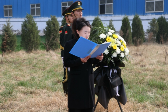 活动中,国旗护卫队队员托起花篮,郑重地将花篮摆放在墓碑前,全体人员向吴祖泰烈士墓敬献鲜花,之后,面向雕像默哀1分钟,以此表达对吴祖泰烈士的缅怀之情。