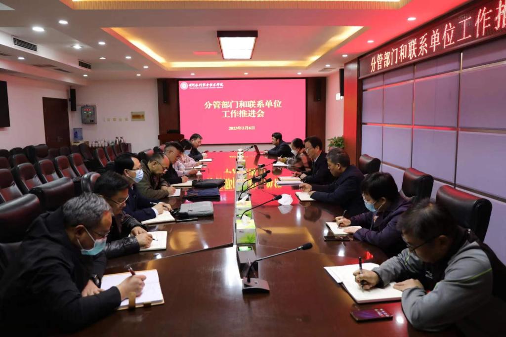 3月6日上午,副校长刘守义在行政楼二楼第一会议室主持召开分管部门和联系单位工作推进会,各单位党政负责人参加会议。