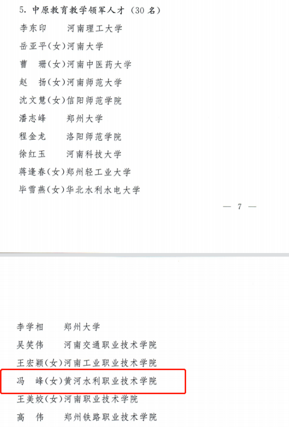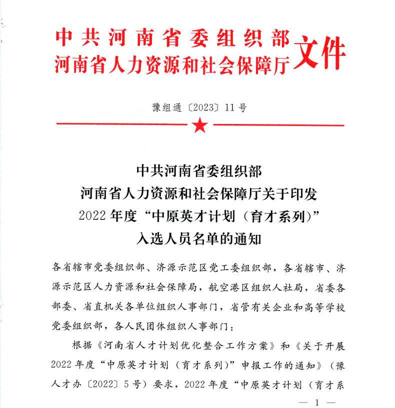 日前,中共河南省委组织部、河南省人力资源和社会保障厅联合发文,公布了2022年度“中原英才计划(育才系列)”入选人员名单,我校环境工程学院冯峰教授成功入选中原教育教学领军人才。