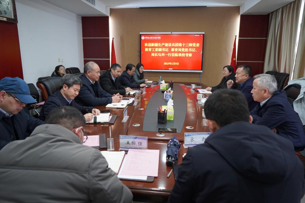 2月9日上午,新疆生产建设兵团第十三师党委教育工委副书记、教育局党组书记、局长马兴一行到我校考察交流。我校党委副书记、工会主席杨士恒,纪委书记朱焕立出席座谈会,党政办公室、党委组织部、党委宣传部、教务处、机械工程学院等部门主要负责人参加座谈会,会议由朱焕立主持。