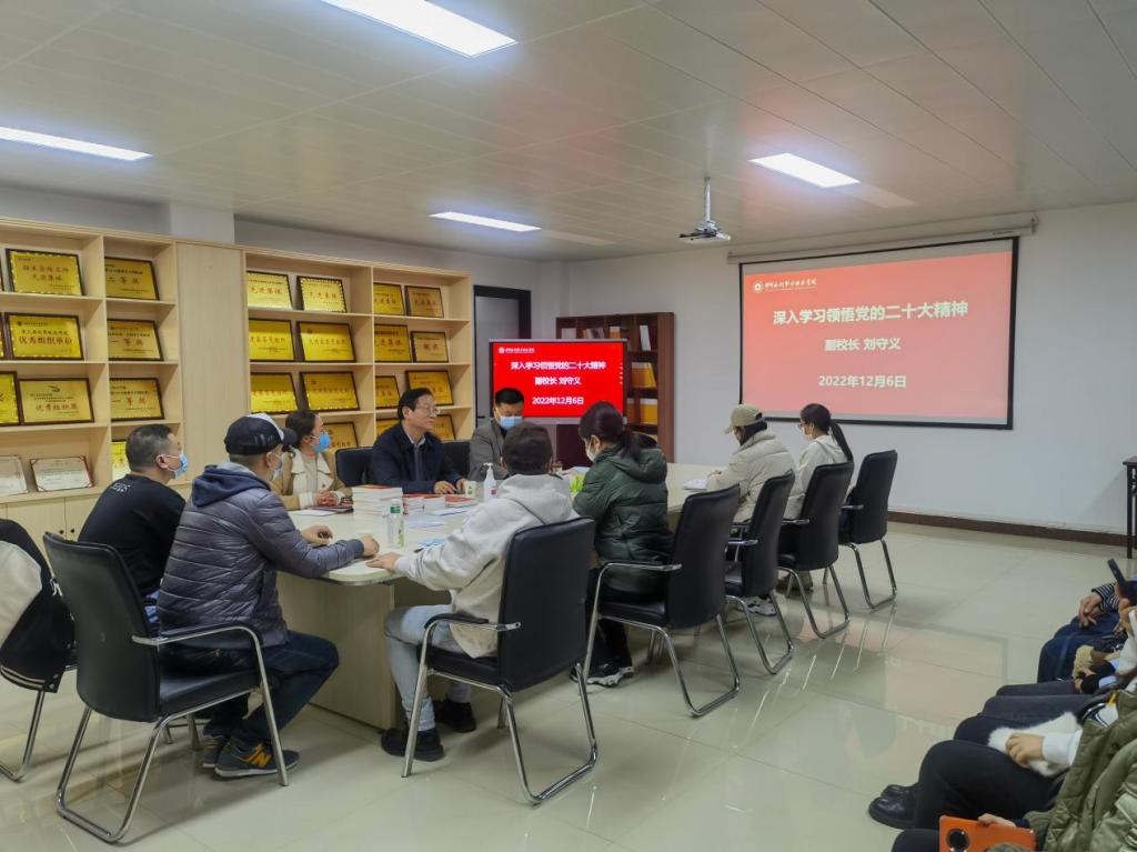 为引导广大师生深入学习领会党的二十大精神, 12月6日下午,副校长刘守义在艺术与设计学院党员活动室宣讲党的二十大精神,艺术与设计学院领导班子、全体教师和学生代表聆听了报告。报告会由艺术与设计学院党总支书记耿亚杰主持。