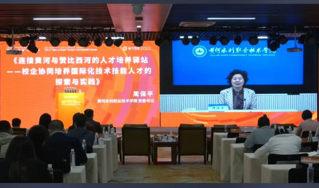 周保平以“校企协同培养国际化技术技能人才的探索与实践”为题,与国内外职业教育专家、企业代表和媒体分享了我校创新职业教育国际合作范式、服务“一带一路”建设、培养国际化技术技能人才的做法。她介绍了完美网页版近年来通过创新机制、深化改革,形成“专业共建、人才共育、过程共管、成果共享、责任共担”的育人理念,搭建政行企校科多元主体的大禹学院境外办学新平台,全方位构建“一体、多点、四融合”的国际化人才培养新模式,多链条助力中国职教“走出去”,全领域贡献国际化水利职教智慧的成效和经验。她表示,黄河水院将继续努力构建“政府支持,行业主导,多元参与,项目管理”的大禹学院建设模式,将其建设成为水利行业优势突出、人才培养特色鲜明、沿线国家高度认可的国际知名水利职教品牌。周保平分享的黄河水院国际化特色办学经验做法引起了与会嘉宾的强烈共鸣。