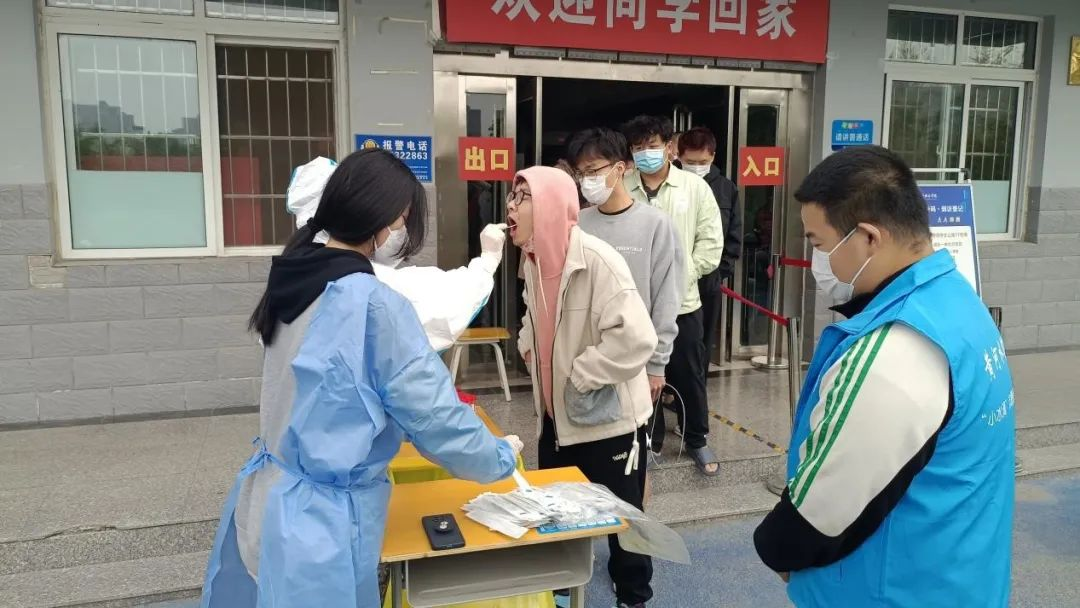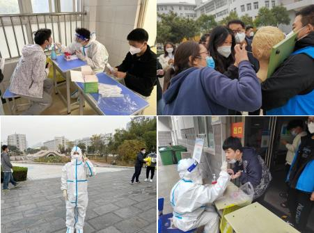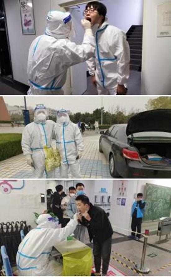 为了减少校内外接触,医务人员培训在校学工人员开展核酸检测。从三尺讲台到抗疫一线,从校园“辛勤园丁”到“抗疫战士”,他们认真细致,为校园安全筑起安全屏障。