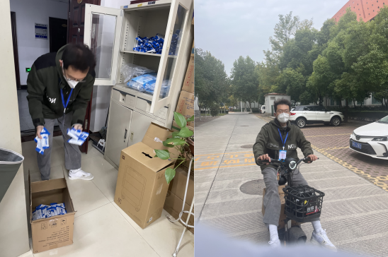 不舍昼夜的后勤工作老师,奔跑在一线,为保障广大师生的正常生活储备充足的物资,安排核酸检测、采购中药汤包、专车接送学生外出看病,他们将所有辛苦咽下,将无私的爱奉献给大家。
