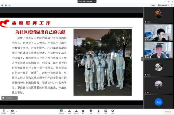 评选活动由各学院从419名青年志愿者先进个人中推荐30名同学参加青年志愿服务标兵评选。活动过程中,同学们通过图文并茂、制作精美的PPT,清晰详实地介绍了参加志愿服务活动的情况,有的为解决老年人等特殊群体的问题深入走访社区,只为送去温暖;有的不畏艰险抗击疫情,变身“大白”奔赴抗疫一线。有的结合自身专业的优势,有的化身环境治理能手等,同时大家也分享了自己的收获与心得。参赛同学们纷纷表示:“面对近期复杂的疫情形势,将继续听从完美网页版统一安排部署,投身校园志愿者工作队伍中,做好校园疫情防控的宣传员、保障员与战斗员,用爱心、责任、担当与使命,共筑黄河水院安全防线!”志愿者同学们用实际行动诠释了当代青年“立大志、明大德、成大才、担大任”的时代精神,充分展现了新时代黄河水院人敢于担当、勤恳实干的精神风貌。最终,信息工程学院学生冯梦琪、机械工程学院冯志柯、土木与交通工程学院王旭、水利工程学院高赛等20名同学获得青年志愿服务标兵荣誉称号。