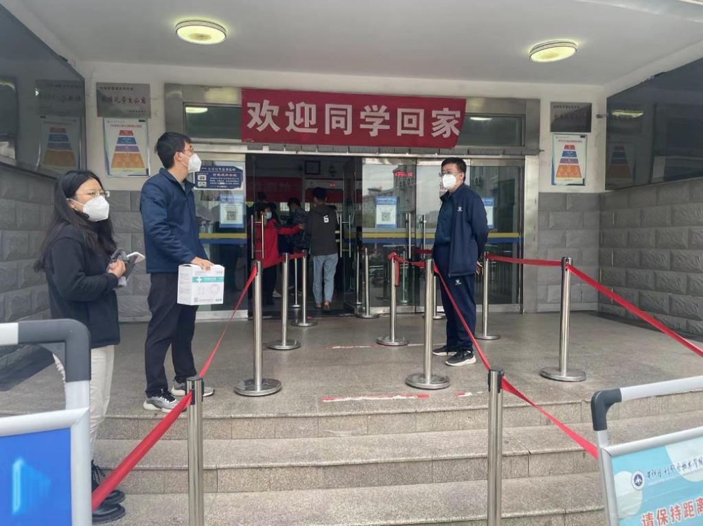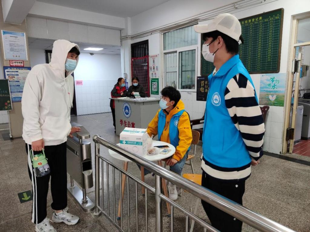 环境工程学院志愿者负责登记宿舍楼出入人员信息