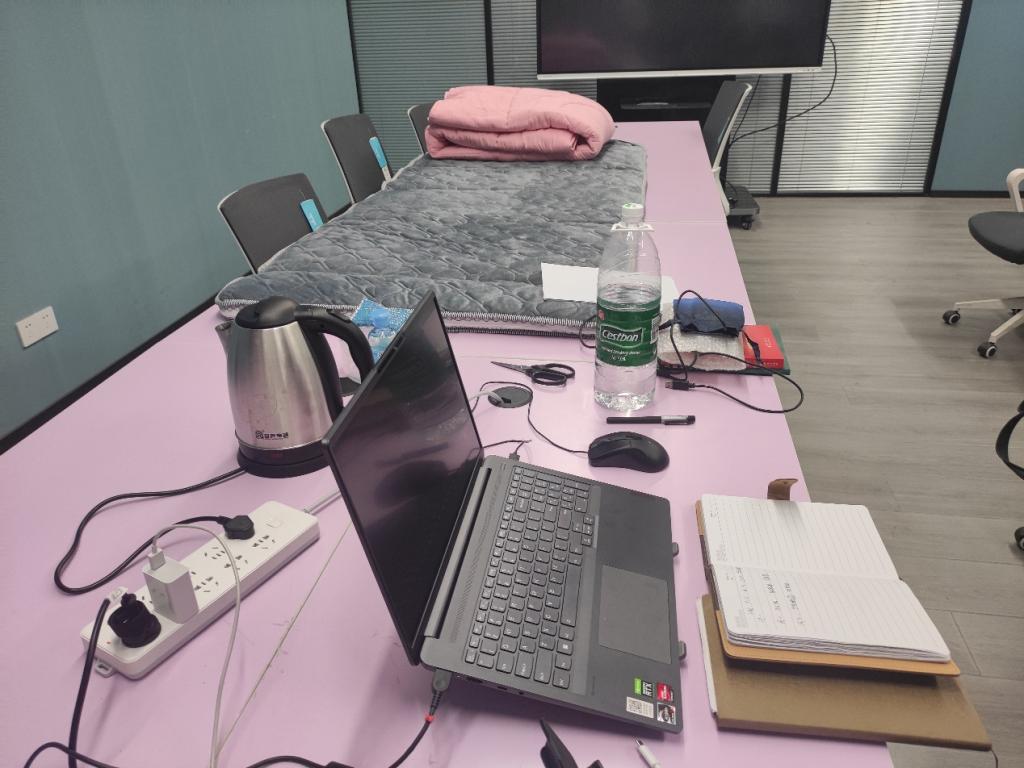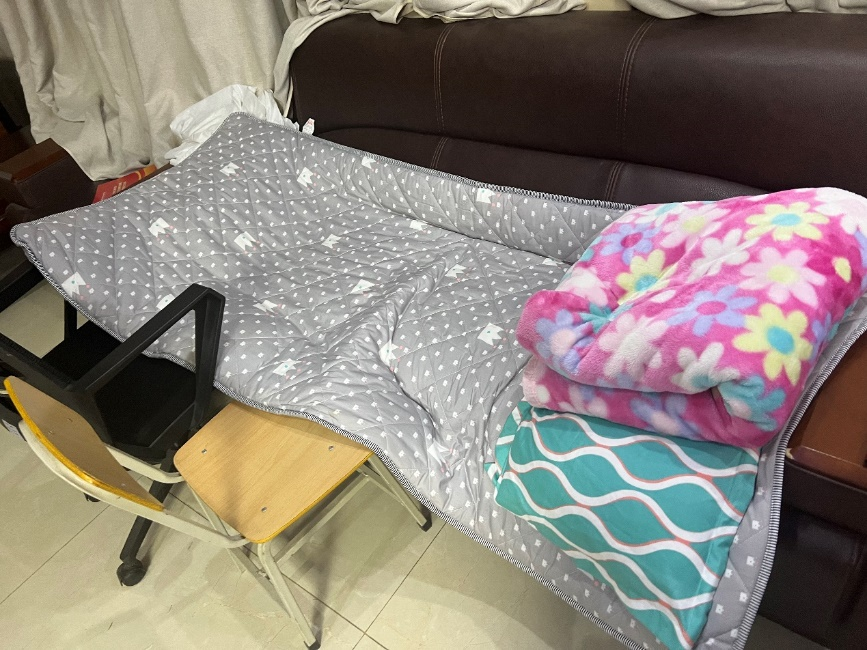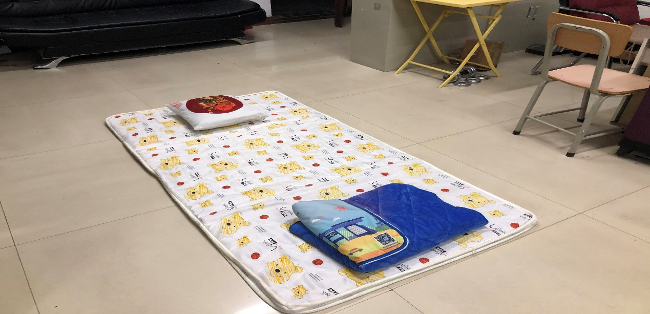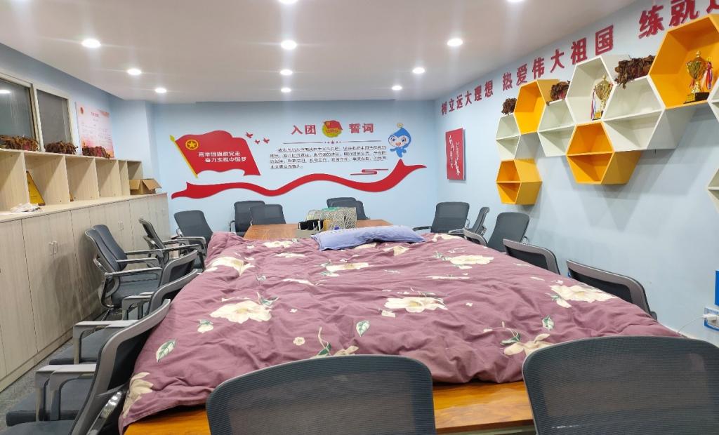 近期,我校周边疫情形势严峻,完美网页版实施临时封控、严格封闭管理。为全力保障全体师生健康及生命安全,确保完美网页版稳定,为学生提供安全环境,我校辅导员教师坚守岗位,吃、住在校,站好为学生服务的每一班岗。在责任面前,他们安抚好孩子,交待好家人,克服了一切困难,义无反顾的坚守在校园,坚守在同学们身边。地铺、行军床、办公室沙发、会议桌都变成了辅导员们的临时床铺。(供图:学生处)