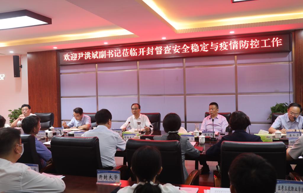 9月27日,省委教育工委专职副书记尹洪斌到我校督导检查安全稳定与疫情防控工作,并现场主持召开开封地区高校安全稳定与疫情防控工作座谈会。省教育厅职成教处、人事处相关同志,开封市教体局负责同志,我校领导周保平、胡昊,各驻汴高校主要负责人陪同参加活动。
