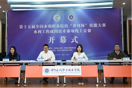 9月27日上午,第十五届全国水利高等职业院校技能大赛水利工程成图技术赛项开赛式以线上形式在我校4号实训馆多功能演播厅举办。中国水利教育协会副会长兼秘书长王韶华、秘书处副主任郭鸿,我校校长胡昊、副校长焦爱萍等出席开赛式。开赛式由焦爱萍主持。来自全国18个省、自治区、直辖市的22支参赛队的参赛选手和指导教师,以及赛项裁判、合作企业代表参加线上开赛式。