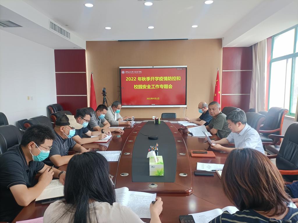 9月2日,我校在第二会议室召开“2022年秋季开学疫情防控和校园安全专项督导检查”工作会议。副校长刘玉宾出席会议,党政办公室、党委宣传部等相关职能部门负责人参加会议。
