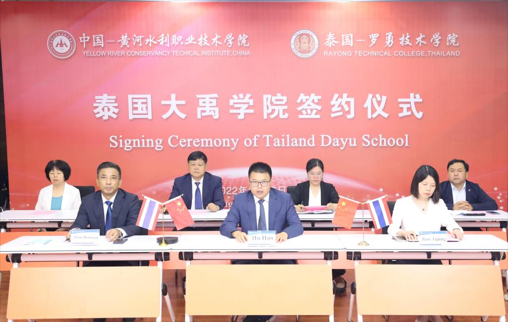 8月26日上午,我校与泰国罗勇技术学院共建大禹学院签约仪式在四号实训楼多功能演播厅举行。泰国职业教育委员会办公室主任奥克土恩,罗勇技术学院校长阿润塄,副校长里特朗格拉特、西里库尔帕尼亚波恩,我校校长胡昊,副校长焦爱萍、菅浩然出席仪式。罗勇技术学院和我校相关部门负责人、教师代表共同参会。仪式由菅浩然主持。