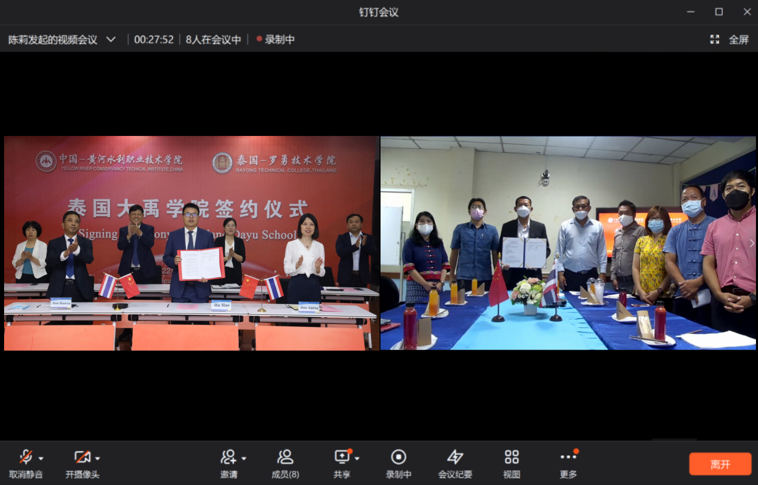 罗勇技术学院位于泰国东部罗勇府,开设有建筑工程技术、机械工程等20余个专业,在校生5000余人。两校已在来华留学、教师培训等领域开展合作。未来,我校将依托大禹学院输出中国职教标准,培养泰国和我国“走出去”企业急需的建筑类技术技能人才。(供图:对外联络与合作处)