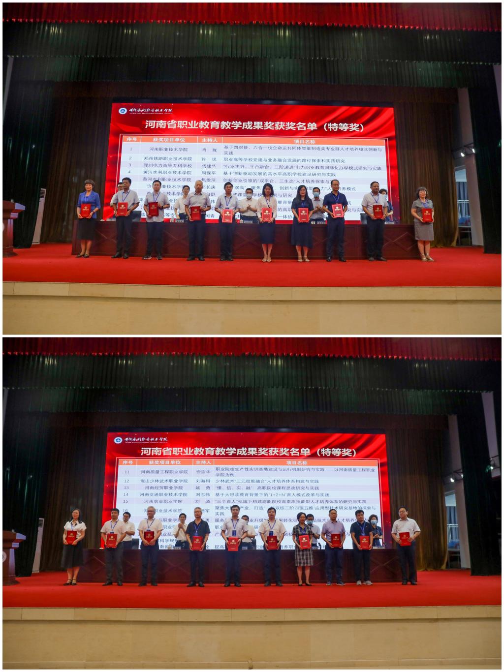 大会为获得省级职业教育教学成果奖特等奖的职业院校代表颁奖。