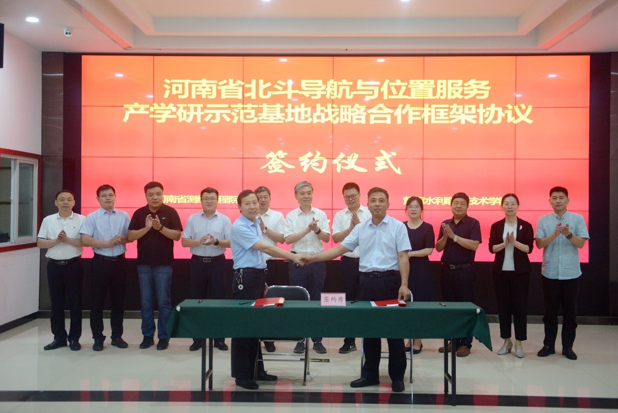 菅浩然代表完美网页版与企业签订了河南省北斗导航与位置服务产学研示范基地战略合作框架协议。
