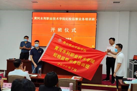 开班仪式环节,中共济源市委党校副校长贺志华致欢迎词,并对愚公移山干部学院进行了介绍,王忠伟与贺志华一起为我校纪检监察业务培训班授旗。