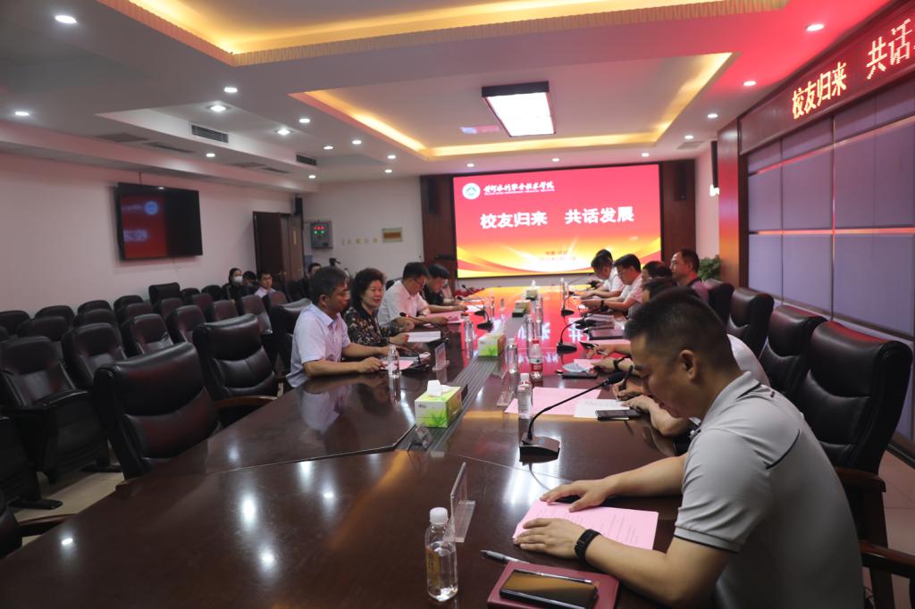 6月21日下午,我校在行政楼第一会议室召开“校友归来 共话发展”座谈会。校党委书记周保平,校党委副书记、校长胡昊,副校长菅浩然,校友总会会长赵国训、常务副会长王卫东,对外联络与合作处处长李纪宾、校友代表参加会议。会议由菅浩然主持。
