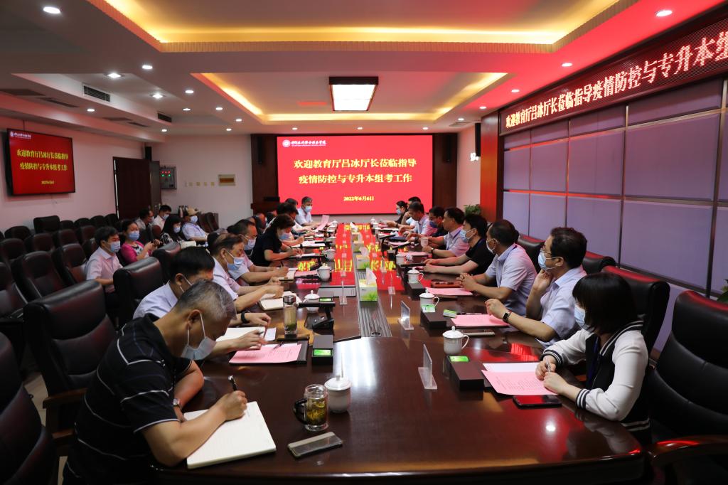 6月6日上午,省教育工委专职委员吕冰一行到我校检查指导疫情防控和专升本组考工作,工作座谈会在行政楼第一会议室召开。开封市政府副秘书长王亚文、市教体局总督学宋祥山等,我校党委书记周保平,校党委副书记、校长胡昊及相关校领导,开封大学、开封文化艺术职业学院、商丘学院应用科技学院相关领导参加座谈会。