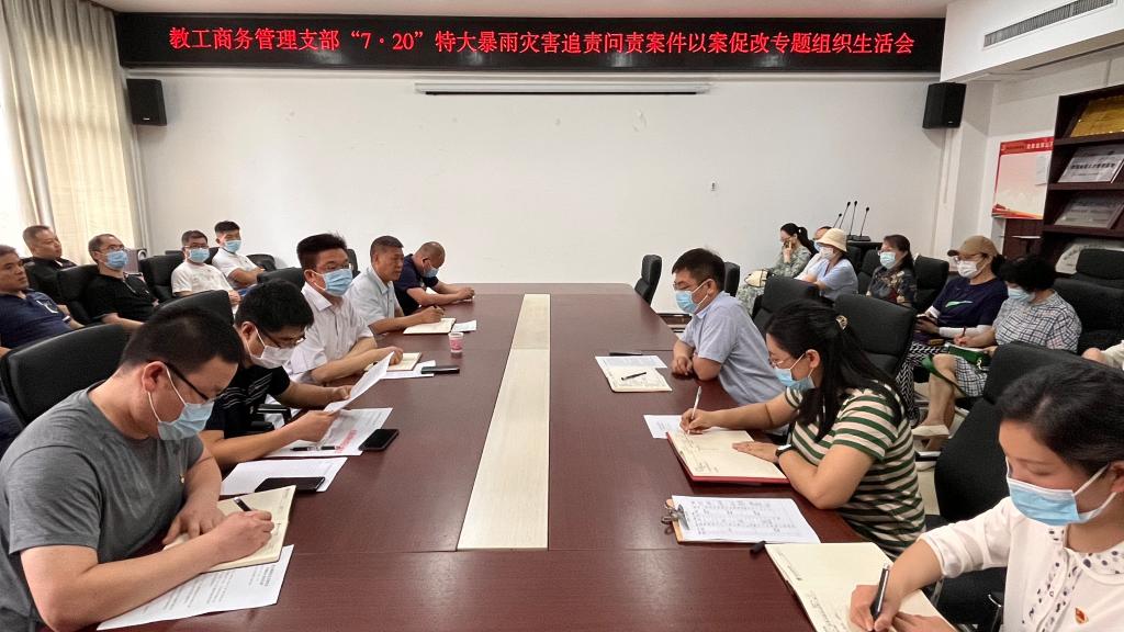 5月31日下午,商务与管理学院教工党支部郑州“7·20”特大暴雨灾害追责问责案件以案促改专题组织生活会、学院领导班子民主生活会先后在学院会议室召开。党委副书记刘卫锋以普通党员身份全程参加了教工党支部专题组织生活会,并指导了学院领导班子民主生活会。