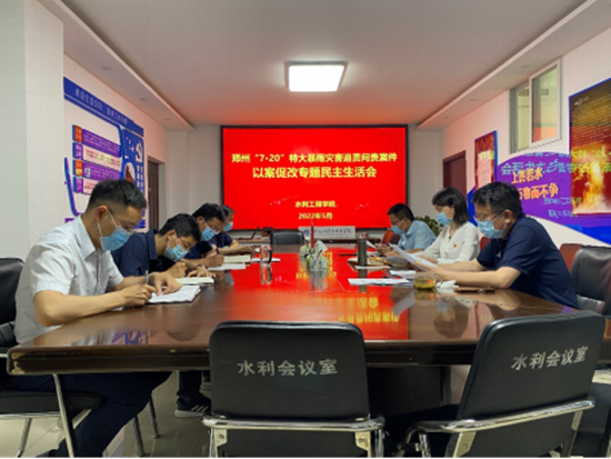 5月31日下午,水利工程学院党总支召开郑州“7·20”特大暴雨灾害追责问责案件以案促改专题民主生活会,副校长焦爱萍出席指导,学院领导班子成员参加会议。会议由学院党总支书记孙天星主持。