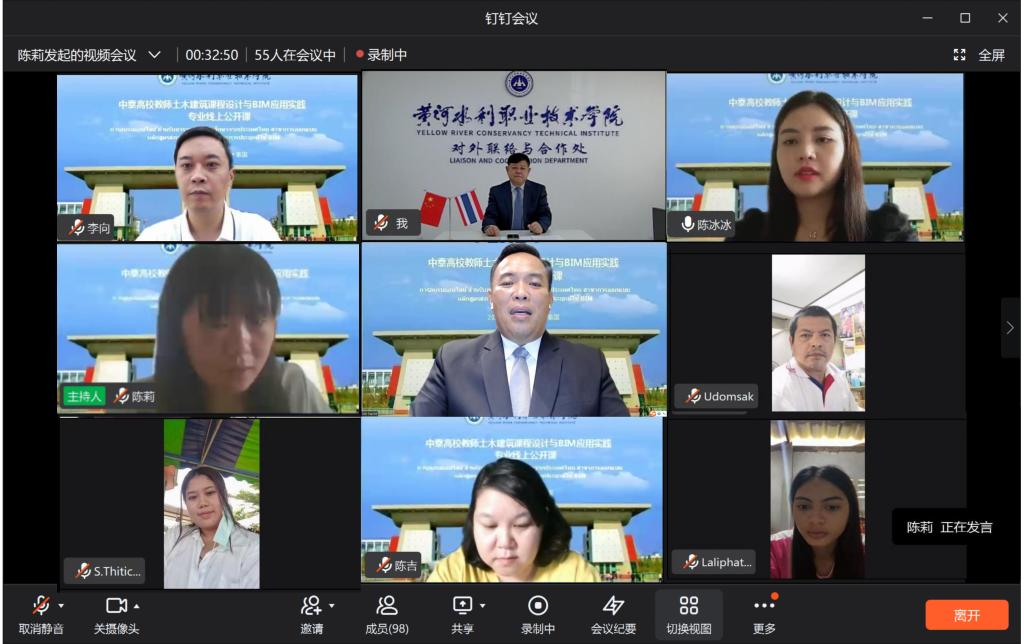 5月28日,我校与泰国职业教育委员会办公室联合举办了建筑工程技术专业泰国高校教师线上培训。来自泰国汶干职业学院、清迈职业学院、南邦理工学院等高职院校的80余名教师参加了此次培训。