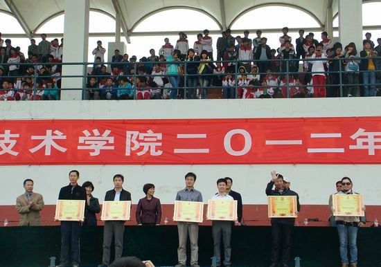 天朗气清,惠风和畅。4月15日,我院2012年春季田径运动会闭幕式在祥云体育场隆重举行。院党委副书记、纪委书记王卫东,副院长刘紫婷及有关部门、系部领导出席本次运动会闭幕式。闭幕式由本届运动会总裁判长刘盎主持。