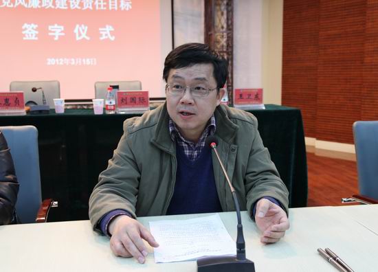 3月15日,我院召开2012年度党风廉政建设目标责任制签订大会,院领导张惠贞、刘国际、茹正波、王卫东、刘紫婷及各部门主要负责人与会,会议由党委副书记、纪委书记王卫东主持。