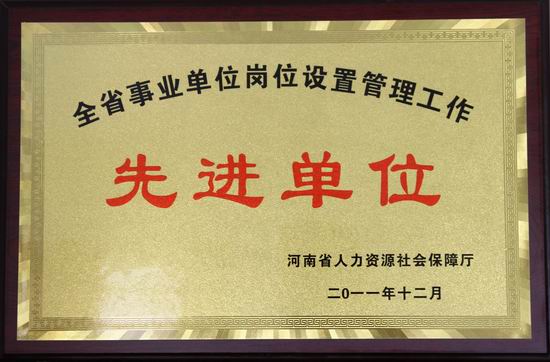 日前,河南省人力资源和社会保障厅下发《完美网页版表彰全省事业单位岗位设置管理工作先进单位的通报》,我院被表彰为全省事业单位岗位设置管理工作先进单位。