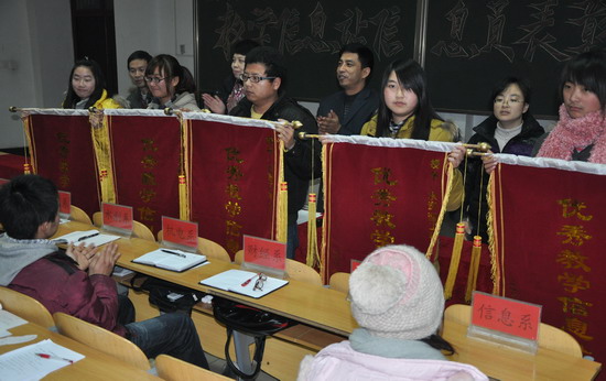 会议对在教学质量管理和教学信息反馈工作中表现突出的单位和个人进行了表彰。学生处处长菅浩然宣读了优秀教学信息站和优秀教学信息员名单,其中财经系、土木工程系、交通工程系、水资源工程系、自动化工程系5个教学信息站被评为2011年度优秀教学信息站,财经系程雅琼等186名教学信息员被评为2011年度优秀教学信息员。与会领导分别向优秀教学信息站和优秀教学信息员颁发了锦旗、获奖证书和奖品。