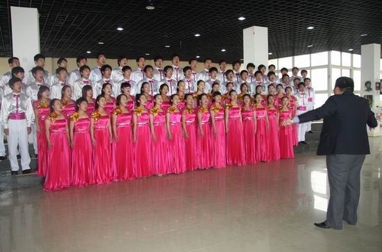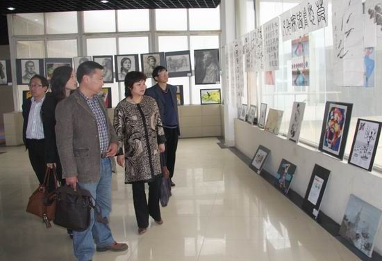 汇报会结束后,专家组在王书记的陪同下,来到了我院餐厅三楼的学生活动排练厅,兴致盎然地观看了我院大学生合唱团演唱的《东方之珠》和大学生艺术展演书法、绘画作品展,并进行了专业的指导。