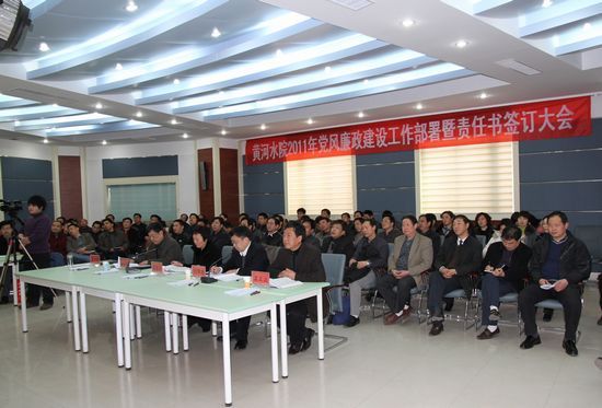 王卫东副书记还传达了院党委两个重要文件:《黄河水利职业技术学院完美网页版实行党风廉政建设责任制的规定》、《黄河水利职业技术学院2011年党风廉政建设责任目标》,并对2011年党风廉政建设目标责任制的签订办法、责任书的内容、签订流程、签订对象均作了详细说明。