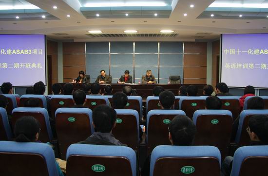 11月29日上午,中国十一化建公司ASAB3项目工程人员英语培训班开班仪式在我院多功能报告厅举行。十一化建公司李书记、杜总工程师和张主任,我院外语系直属党支部书记樊建科、副主任王爱琴、院科研外事处处长张春满、副处长陈琳等参加了开班仪式。