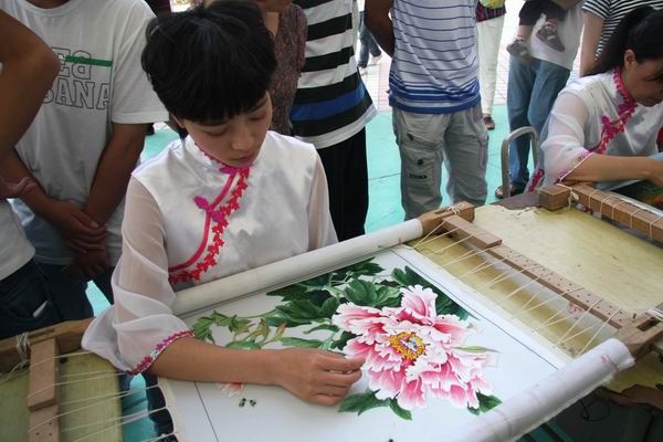 当天上午,活动展示了我市7项国家级非物质文化遗产保护项目和23项省级非物质文化遗产保护项目。巧夺天工的开封汴绣、享誉中外的朱仙镇木版年画、栩栩如生的神嘴马大吹糖人儿、汴京灯笼张、剪纸艺术等一批具有代表性的非物质文化遗产项目作了现场展示,许多项目还邀请观众现场参与这些技艺和成品的制作。这些富有民族文化气息、各具传统文化特色的项目引起了我院师生的浓厚兴趣和高度关注,大家纷纷驻足观看,有些师生还围在马大吹、灯笼张等艺人身边,向他们请教并直接动手制作起来。