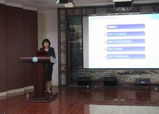 我院党委书记、院长刘宪亮对评估组到来表示欢迎,同时表示将以评促建,继续做好就业工作。副院长刘紫婷从就业工作开展情况、就业工作评估自评、就业工作特色、就业工作问题与改进等几个方面,就我院学生就业工作向专家组进行了汇报。