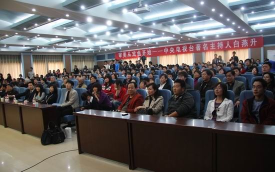4月24日晚,中央电视台著名戏曲节目主持人、“金话筒”金奖获得者白燕升来到我院,在2号实训楼学术报告厅做了题为《审美从戏曲开始》的精彩讲座。院领导刘宪亮、茹正波、王卫东、刘紫婷及我院师生300余人聆听了讲座。