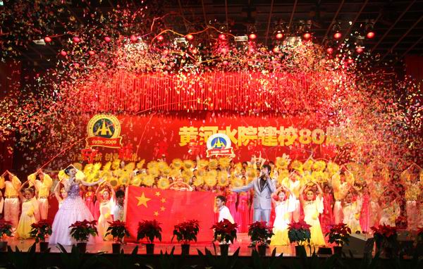 10月31日晚7点,黄河水院建校80周年庆典晚会在风雨球场隆重上演,院领导刘紫婷等,部分老校友及3000余名师生共同观看了晚会。