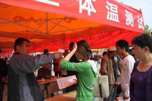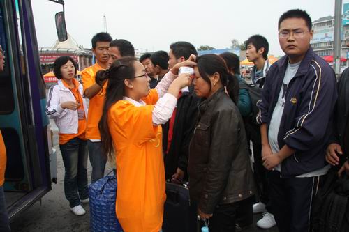 严防甲型H1N1流感传播成为今年迎新工作的另一主题。学院医务所在火车站、汽车站和学院大门口均设立了迎新医疗站,相关人员利用红外自动体温测量仪对所有新生及其家长测量体温,对发烧病人及时采取有效措施,确保了全院师生的身体健康。